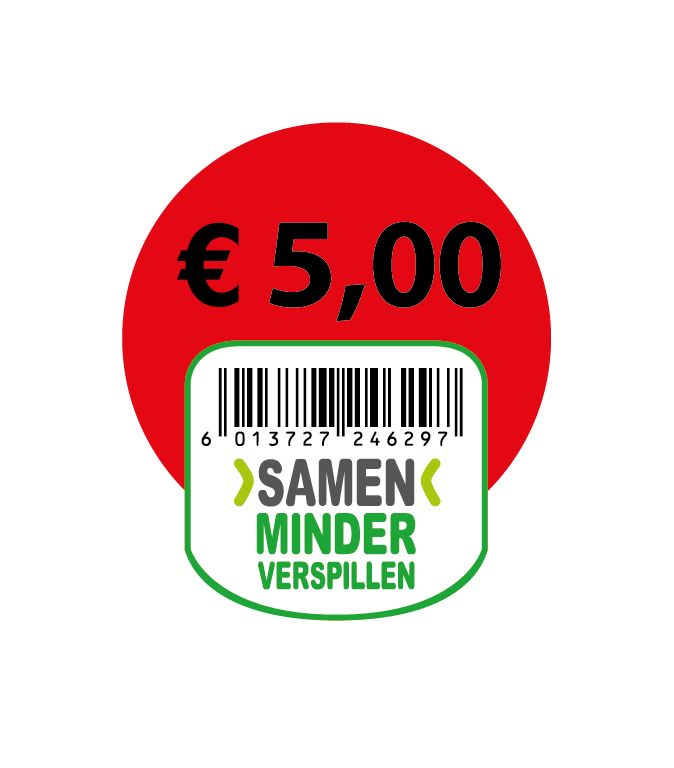 5,00 Euro Sticker Samen Minder Verspillen (1260 stickers per rol)